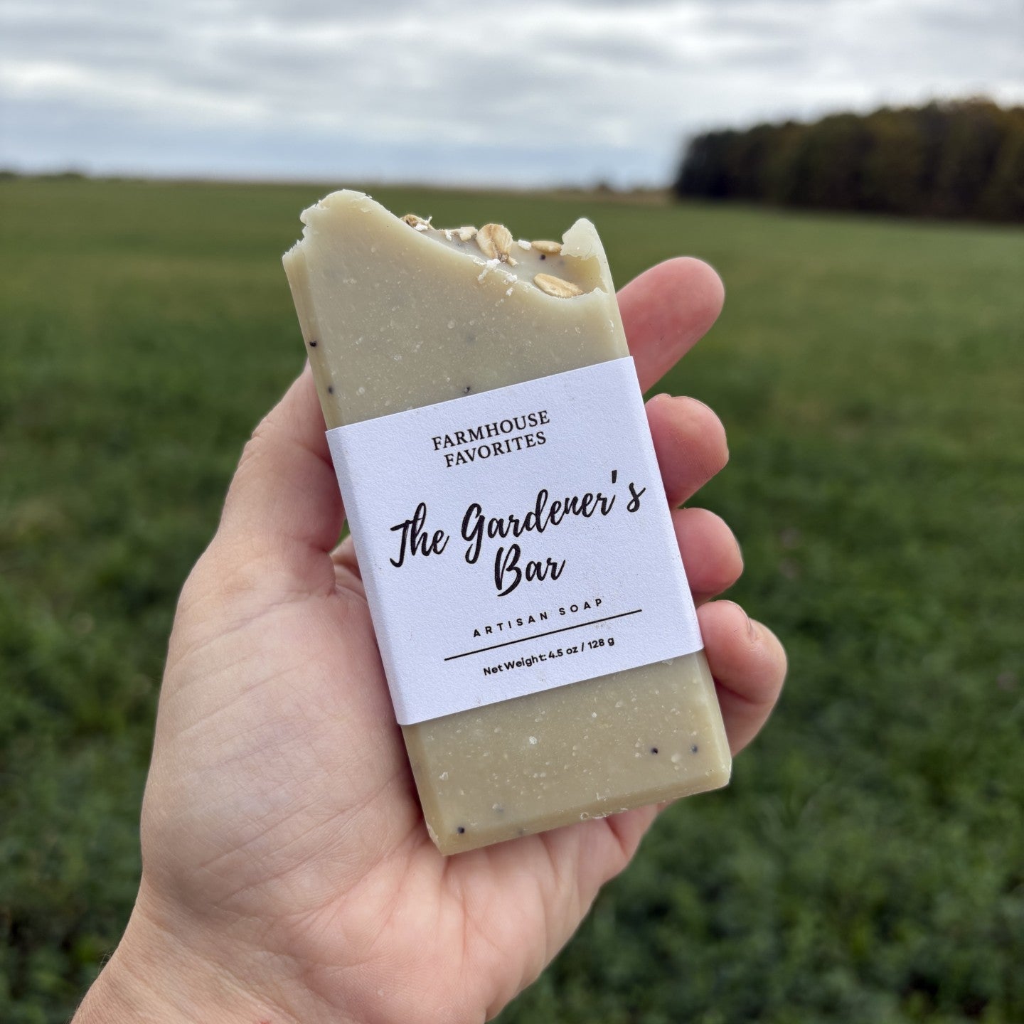 After a long day in the garden, treat your hands to the care they deserve. Our Gardenerโs Soap Bar is packed with natural exfoliants like poppy seeds, pumice powder, and whole oats to gently scrub away dirt while leaving skin soft and refreshed. Each bar is made with fresh goat milk, moisturizing sweet almond, olive, shea, and avocado oils, and a touch of local honey for an ultra-creamy, nourishing lather.